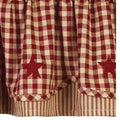 The Fairfield Valance in Heritage House Check with Barn Red is a charming addition to any home, offering a touch of rustic elegance with its classic country design. Measuring 72 In x 15.5 In, this valance is crafted from everyday cotton, ensuring durability and a soft, inviting texture. The warm barn red and nutmeg hues create a cozy atmosphere, perfect for enhancing the primitive or country-style decor of your living space. Its timeless check pattern adds a layer of visual interest, while the applique detailing provides a subtle yet sophisticated finish. Ideal for kitchens, living rooms, or bedrooms, the Fairfield Valance effortlessly complements a variety of color schemes and interior styles. Transform your windows with this delightful piece, bringing warmth and character to your home. Product is lined and has a rod pocket 2.5 In wide. Dry clean only.