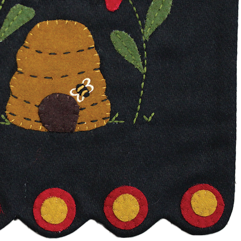Introducing the Bee Time Black Table Runner, a charming addition to your farmhouse decor. Measuring 14 In x 36 In, this everyday table runner is crafted from high-quality wool felt, offering both durability and a soft touch. Its elegant black hue provides a versatile backdrop, while the intricate bee motif adds a touch of whimsy and nature-inspired beauty to your dining space. Perfect for both casual meals and special gatherings, this table runner effortlessly enhances your table setting with its rustic charm. Whether you're hosting a dinner party or enjoying a quiet meal at home, the Bee Time Black Table Runner is sure to impress with its unique design and timeless appeal.