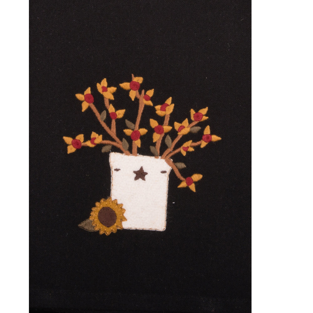 Introducing the Bitter Sweet Crock Towel, a charming addition to your kitchen or dining area that perfectly blends functionality with rustic elegance. Measuring 18" x 28", this towel is crafted from high-quality cotton, ensuring durability and excellent absorbency for all your kitchen needs. The striking black color, adorned with a delightful applique design, adds a touch of farmhouse and country charm to your decor, making it an ideal accessory for the fall season. Whether you're drying dishes or simply adding a decorative touch, this towel is both practical and stylish. Its versatile design complements a variety of interior styles, from modern farmhouse to classic country, making it a must-have for any home. Elevate your kitchen aesthetics with the Bitter Sweet Crock Towel and enjoy the perfect blend of form and function.