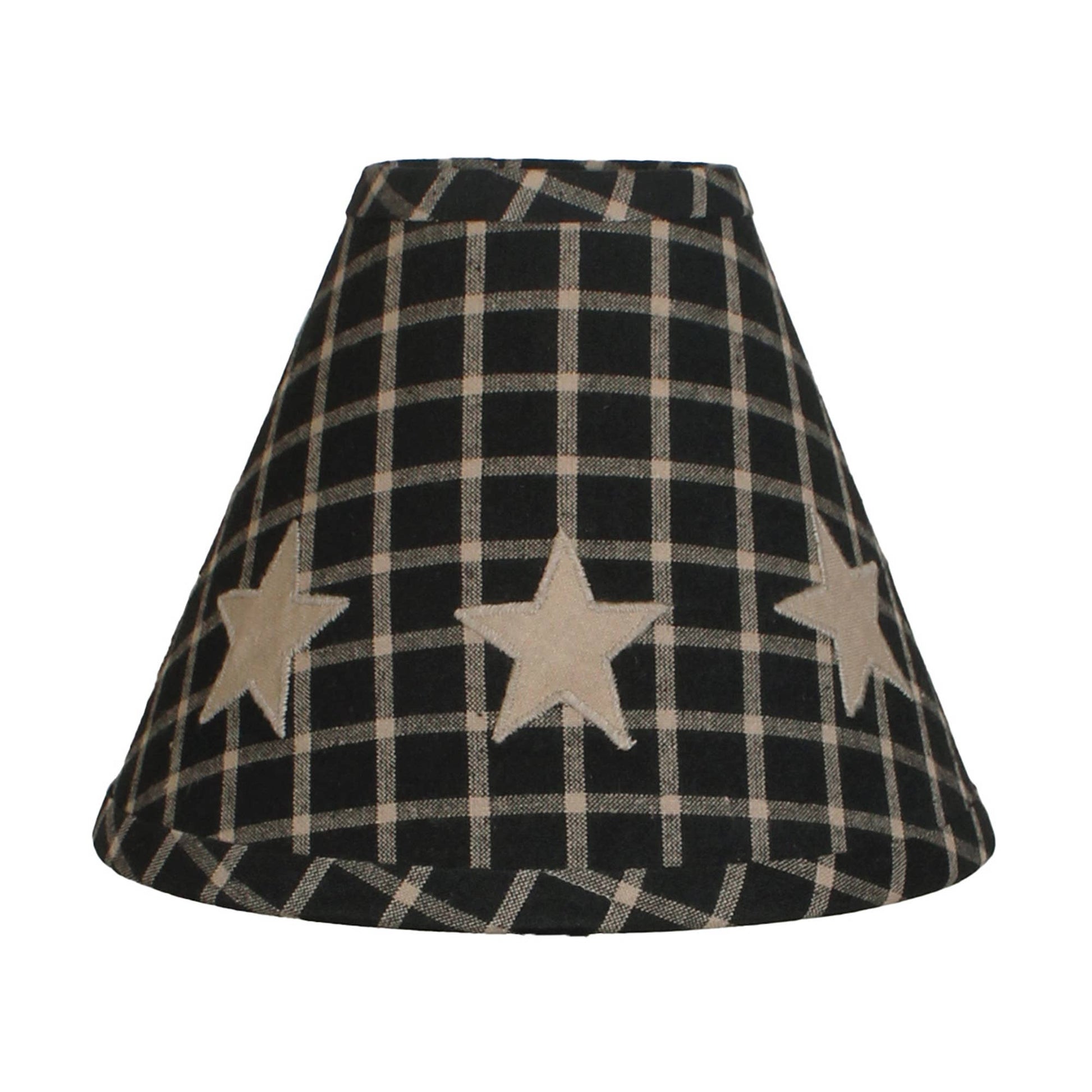 The Black & Tan Star 10 In Shade Lampshade is a perfect addition to your everyday home d?cor, blending timeless charm with practical use. Crafted from high-quality cotton applique, its black and oat tones evoke a cozy, primitive, and country aesthetic. Featuring a striking star design, this shade measures 4 In across the top, 10 In at the bottom, and stands 8 In tall, making it an elegant and functional choice for your space. The self-biased trim and side stitching provide a handcrafted feel while ensuring long-lasting durability. Perfect for enhancing warm and rustic vibes, this lampshade adds a unique focal point to any room. Transform your lighting with this beautifully detailed and versatile piece.