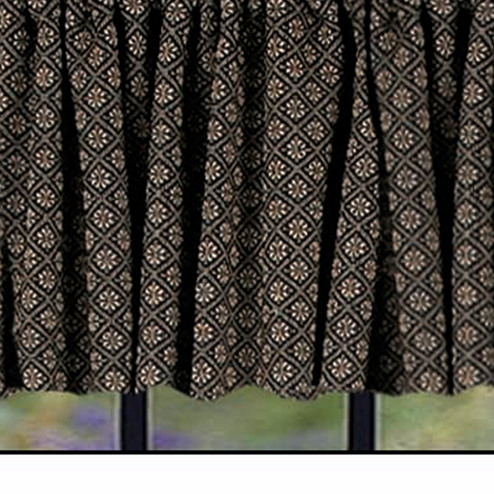 Introducing the Kingston Jacquard Valance, a stunning addition to your home decor that effortlessly combines elegance with a touch of rustic charm. Measuring 72 In x 15.5 In, this valance is crafted from high-quality jacquard fabric, showcasing a sophisticated woven black design that complements a variety of interior styles. The intricate pattern and rich nutmeg tones add depth and warmth, making it a perfect fit for primitive or country-themed spaces. Designed for everyday use, this valance not only enhances your windows but also provides a subtle layer of privacy. Easy to install and maintain, the Kingston Jacquard Valance is an ideal choice for those looking to elevate their living space with a timeless piece. Transform your home with this exquisite valance that promises to be both functional and stylish. Product is lined and has a rod pocket 2.5 In wide. Dry clean only.