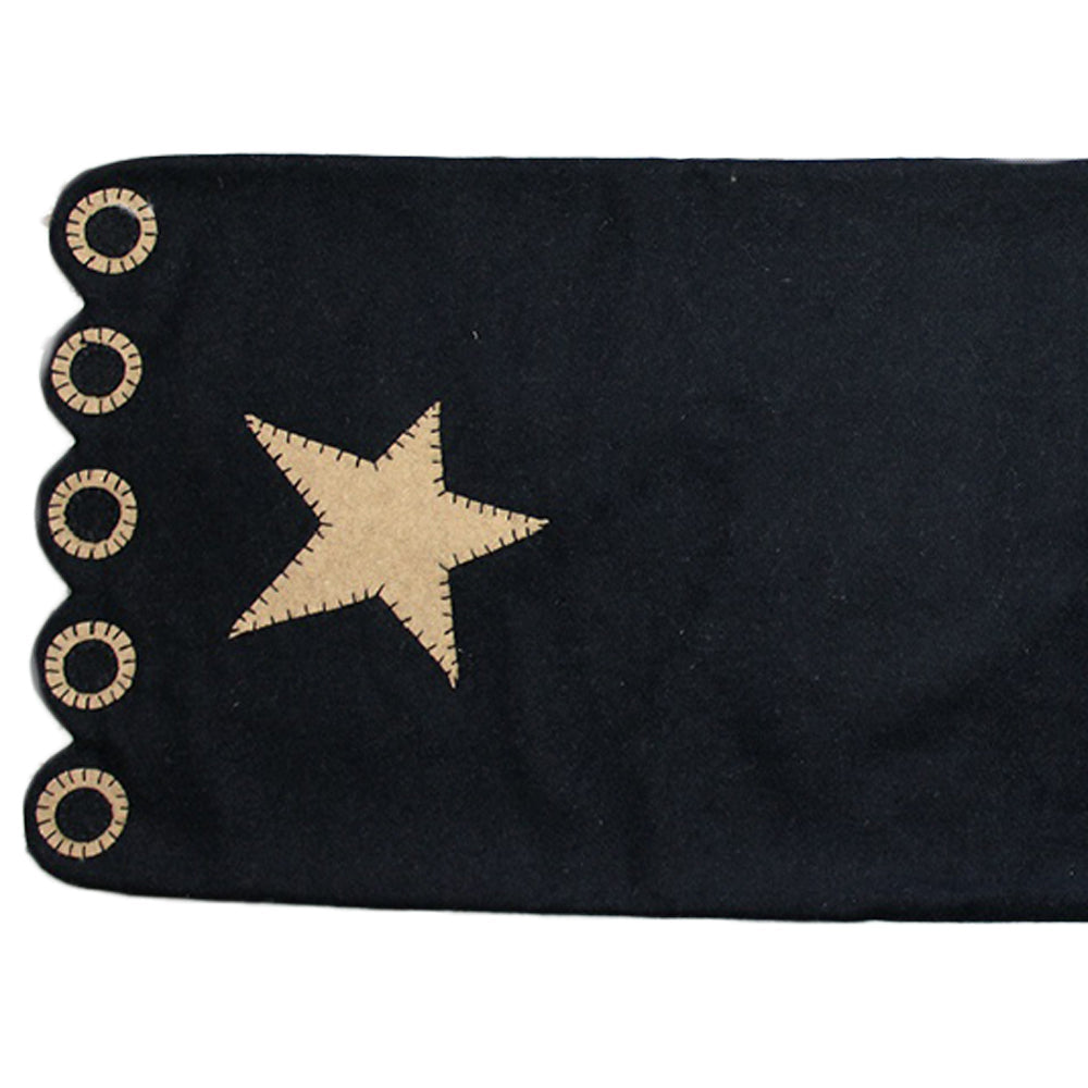 Add a touch of rustic charm to your home with the Star Black & Tan Table Runner. Measuring 14 In x 36 In, this exquisite piece is crafted from high-quality wool felt, ensuring durability and a soft texture. Its striking black and tan color palette, adorned with primitive star motifs, makes it a perfect addition to any country or primitive-themed decor. Ideal for everyday use, this table runner effortlessly enhances the aesthetic of your dining or coffee table, providing a warm and inviting atmosphere. Whether you're hosting a casual family dinner or a festive gathering, this table runner is sure to impress your guests with its timeless elegance and handcrafted appeal.
