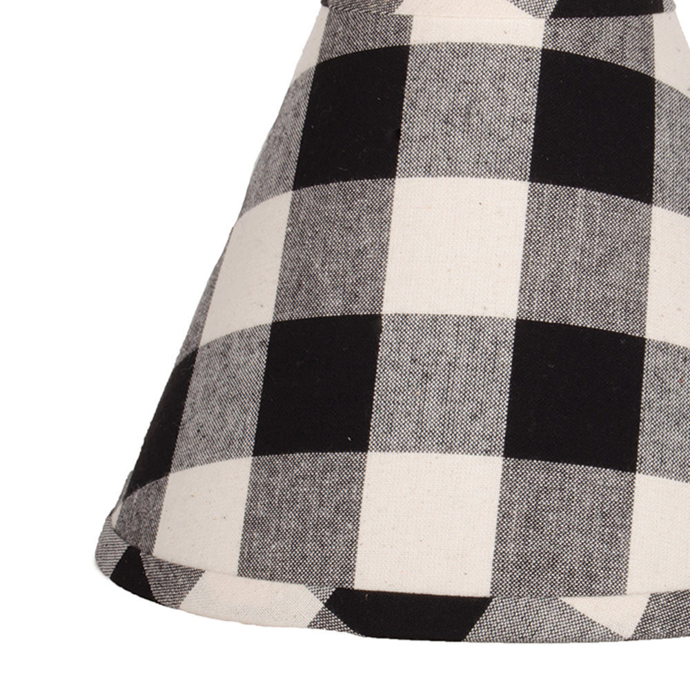 Introducing the 12 In Regular Clip Buffalo Check Lampshade from Buttermilk Farmhouse, a perfect blend of classic design and modern functionality. This lampshade features a timeless black and white buffalo check pattern, adding a touch of rustic charm to any room. Crafted from everyday cotton, it offers durability and a soft, inviting texture. Measuring 6 In across the top, 12 In at the bottom, and 8 In high, it is designed to fit seamlessly into a variety of spaces. The self-biased trim with side stitching enhances its elegant silhouette, ensuring it stands out as a stylish accent piece. Ideal for creating a cozy ambiance, this lampshade is a versatile addition to your home decor.