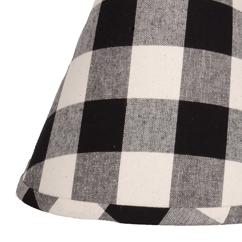 Introducing the Buffalo Check Lampshade by Buttermilk Farmhouse, a perfect blend of rustic charm and modern elegance. This 14 In washer-style lampshade features a classic black and white buffalo check pattern, adding a touch of timeless style to any room. Expertly crafted with self-bias trimming and side stitching, this lampshade ensures durability and a refined finish. Measuring 6 In across the top, 14 In at the bottom, and standing 10.5 In high, it is designed to fit seamlessly with a variety of lamp bases. Made from everyday cotton, it offers a soft, inviting glow that enhances your living space. Elevate your home decor with this versatile and stylish piece from Buttermilk Farmhouse.