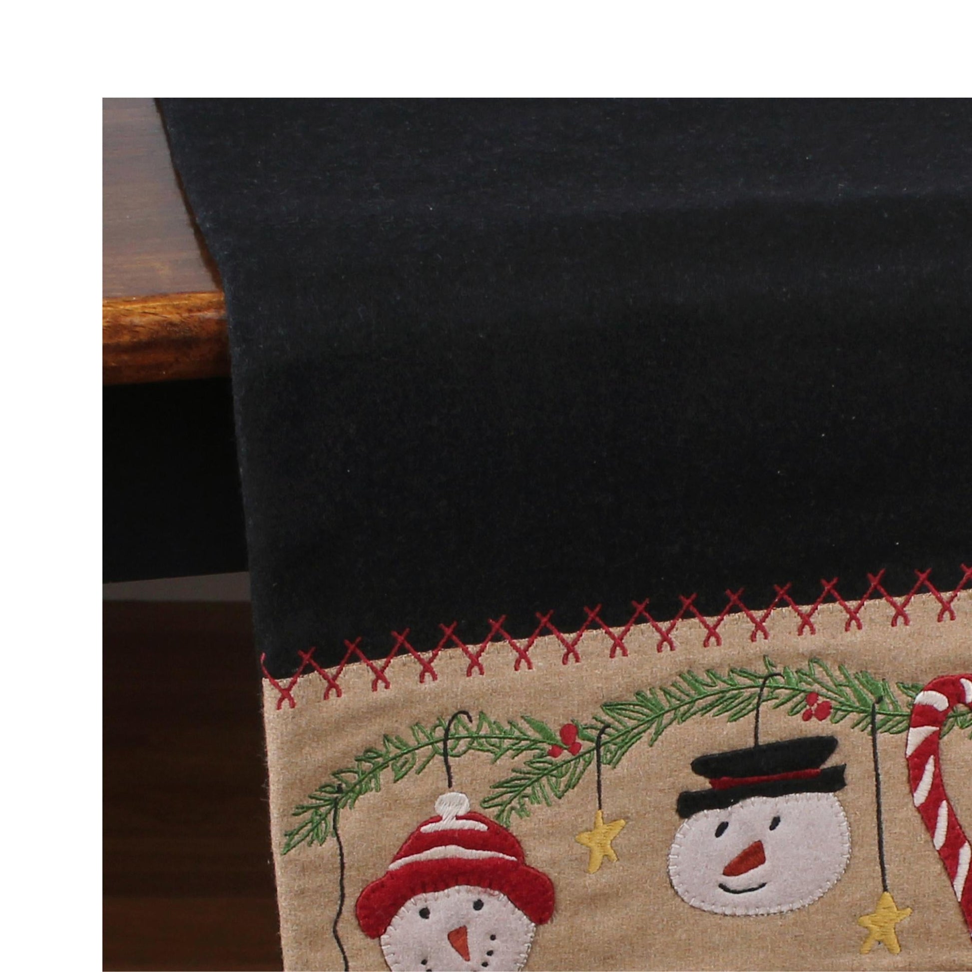 Add a touch of festive charm to your holiday decor with the Snowmen Fun Table Runner. Measuring 14 In x 36 In, this delightful piece is crafted from high-quality wool felt, ensuring durability and a soft texture. The design features playful snowmen in a vibrant palette of black, tan, red, and green, perfectly capturing the spirit of Christmas. Ideal for farmhouse or country-style settings, this table runner effortlessly enhances your dining table with its whimsical and cozy appeal. Whether you're hosting a festive dinner or simply decorating for the season, this table runner is sure to bring warmth and joy to your home.