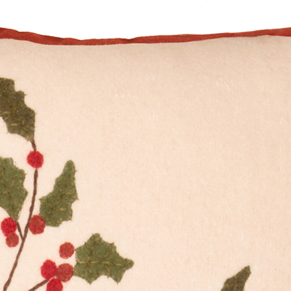 Add a touch of festive charm to your home with the Cardinal Holly Pillow, measuring 14" x 14". This delightful Christmas pillow is crafted from high-quality wool felt, offering both durability and a soft, cozy feel. The cream background beautifully highlights the intricate design of a vibrant cardinal perched amidst lush holly leaves, embodying the spirit of the holiday season. Perfect for farmhouse or country-style decor, this pillow effortlessly enhances the warmth and welcoming atmosphere of your living space. Whether placed on a sofa, armchair, or bed, it serves as a charming accent piece that invites comfort and joy. Embrace the holiday spirit and elevate your seasonal decor with this exquisite Cardinal Holly Pillow.