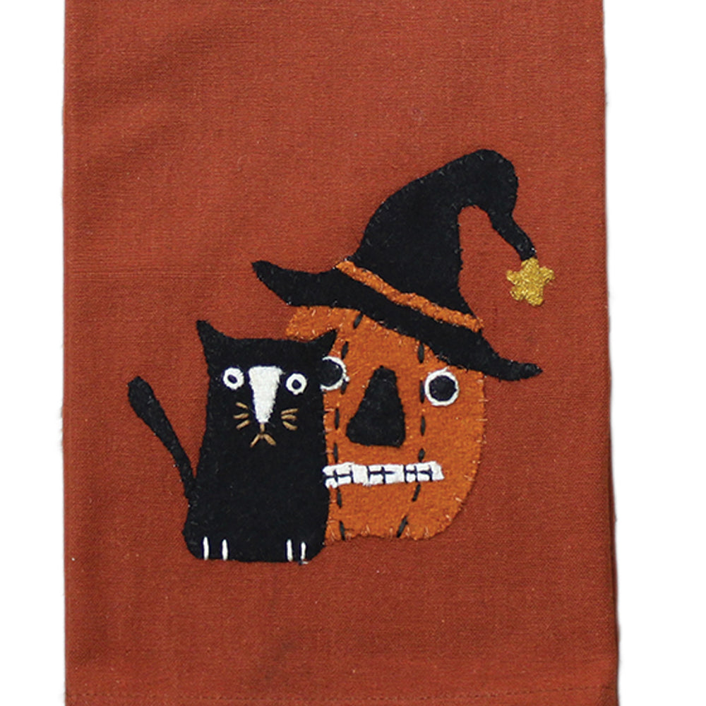 Embrace the spirit of fall with our charming "Cat, Pumpkin...Oh My" Orange Towel, a delightful addition to your farmhouse or country-themed decor. Measuring 18" x 28", this towel is crafted from high-quality cotton, ensuring both softness and durability for everyday use. The vibrant orange hue captures the essence of autumn, while the playful applique design featuring a whimsical cat and pumpkin adds a touch of seasonal cheer to your kitchen or bathroom. Perfect for drying dishes or hands, this towel combines functionality with festive flair. Whether you're hosting a harvest gathering or simply enjoying the cozy season, this towel is sure to bring warmth and charm to your home. Celebrate the beauty of fall with this unique and stylish accessory that makes a wonderful gift for yourself or a loved one.
