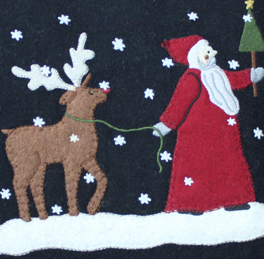 Introducing our charming Christmas Friends Candle Mat, a delightful addition to your holiday decor. Measuring 15 inches in diameter, this exquisite piece is crafted from high-quality wool felt, offering both durability and a touch of rustic elegance. The black farmhouse and country-inspired design features whimsical Christmas motifs that bring warmth and cheer to any setting. Perfect for showcasing your favorite candles, this mat not only protects your surfaces but also enhances the festive ambiance of your home. Whether placed on a dining table, mantel, or sideboard, it effortlessly complements a variety of decor styles, making it a versatile and cherished holiday accessory. Embrace the spirit of the season with this enchanting candle mat that celebrates the joy of Christmas gatherings. Spot Clean.