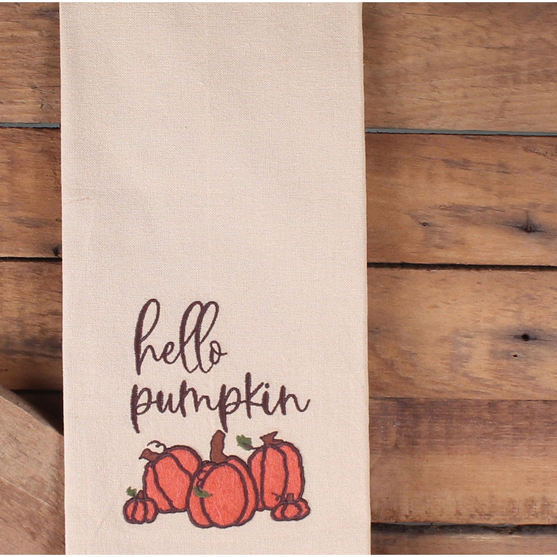 Introducing our charming "Hello Pumpkin" Towel, a delightful addition to your fall decor. Measuring 18"x28", this towel is crafted from high-quality cotton, ensuring both softness and durability. The warm tan and orange hues perfectly capture the essence of autumn, while the intricate applique design adds a touch of farmhouse and country charm. Ideal for kitchens or bathrooms, this towel not only serves a practical purpose but also enhances your seasonal decor with its cozy, inviting aesthetic. Whether you're hosting a harvest gathering or simply enjoying the changing seasons, this towel is a perfect way to celebrate fall in style.