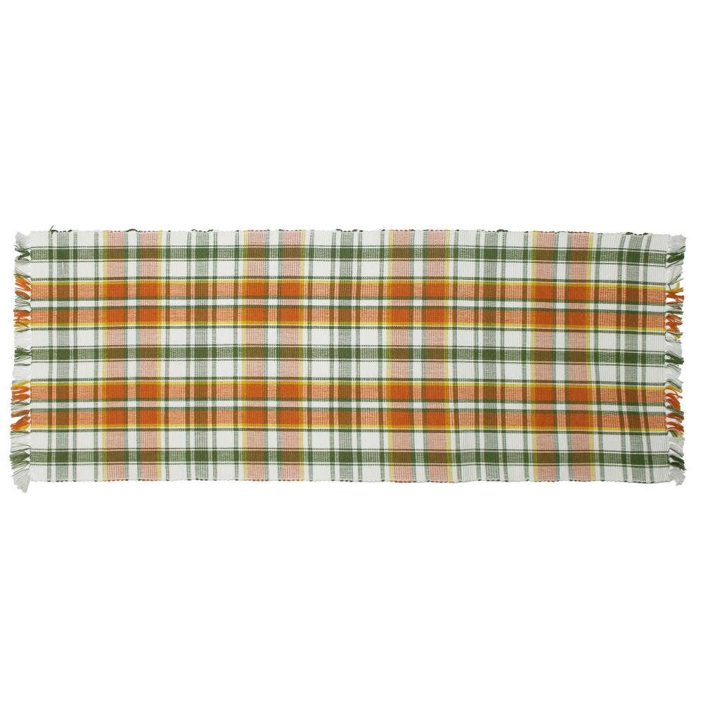 Bring the warm hues of autumn to your table with the Fall Harvest Plaid Table Runner. Measuring 14 In x 36 In, this table runner is crafted from soft, durable cotton, making it perfect for both everyday use and festive fall gatherings. The vibrant plaid design features a rich blend of orange, sage, and gold, perfectly capturing the colors of the season. Its farmhouse and country style adds a cozy, rustic charm to your dining or console table, making it an ideal centerpiece for fall d?cor. Whether hosting a harvest dinner or simply embracing the season, this table runner creates a welcoming and inviting atmosphere. Celebrate fall in style with this timeless and versatile accessory.