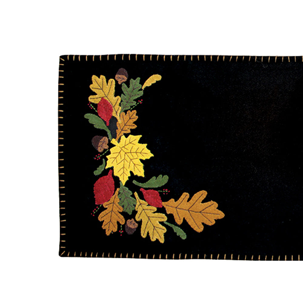 Elevate your autumn dining experience with our exquisite Fall Leaves Black Table Runner. Measuring 14 In x 36 In, this table runner is crafted from premium wool felt, offering a luxurious texture that complements any farmhouse or country-style decor. The rich black background is adorned with intricate fall leaf designs, capturing the essence of the season with elegance and charm. Perfect for both casual family dinners and festive gatherings, this table runner adds a touch of warmth and sophistication to your table setting. Its durable construction ensures it will be a cherished part of your seasonal decor for years to come. Embrace the beauty of fall and transform your dining space with this stunning table runner.