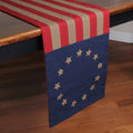 The Flag Table Runner features bold red and oat stripes leading to a navy field adorned with a ring of 13 stars—symbolizing the unification of the original colonies and echoing the timeless Betsy Ross flag. Perfect for celebrating American pride and seasonal patriotic décor, this runner adds both style and protection to your table. A striking accent for holidays, gatherings, and everyday Americana charm.