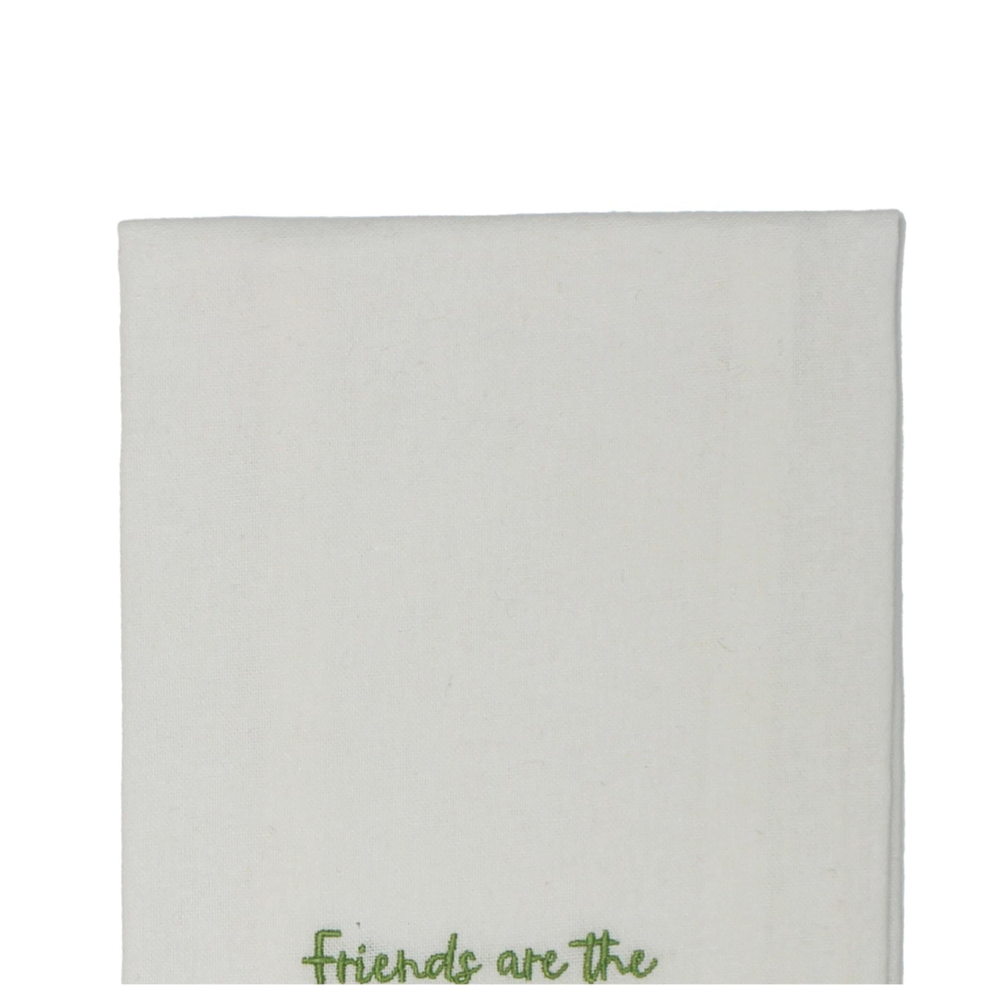 Introducing the "Friends are Flowers" Towel, a charming addition to your kitchen or bathroom that combines functionality with a touch of rustic elegance. Measuring 18"x28", this everyday cotton towel is perfect for drying dishes, hands, or adding a decorative flair to your space. The embroidered design features a heartwarming message, "Friends are Flowers," surrounded by delicate floral accents, making it a delightful gift for loved ones or a treat for yourself. Its soft, absorbent cotton fabric ensures durability and comfort, while the tan color complements any farmhouse or country-style decor. Whether you're hosting a gathering or simply enjoying a quiet day at home, this towel brings warmth and charm to your everyday routine.