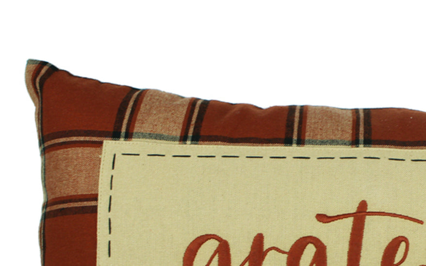 Embrace the cozy charm of autumn with the Harvest Moon Grateful Pillow, a delightful addition to your seasonal decor. Measuring 14" x 20", this pillow is crafted from high-quality cotton, ensuring both comfort and durability. The vibrant orange hue and intricate applique design capture the essence of fall, making it a perfect accent for any farmhouse or country-style home. Its heartfelt "Grateful" message serves as a warm reminder to appreciate the beauty of the season. Whether placed on a sofa, chair, or bed, this pillow adds a touch of rustic elegance to your living space. Celebrate the harvest season with this inviting and stylish accessory.