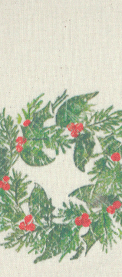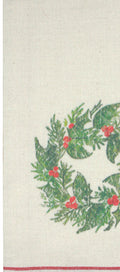 Introducing the Holiday Grain Sack Wreath Towel, a charming addition to your festive decor. Measuring 18" x 28", this towel is crafted from high-quality cotton, ensuring both durability and a soft touch. The printed design features a delightful wreath motif in cream, red, and green, perfectly capturing the essence of a cozy farmhouse Christmas. Its classic grain sack style adds a touch of rustic elegance, making it an ideal accessory for country-themed kitchens or holiday gatherings. Whether used for drying dishes or as a decorative accent, this towel brings warmth and cheer to your home during the holiday season. Embrace the spirit of Christmas with this beautifully designed towel that combines functionality with festive flair.
