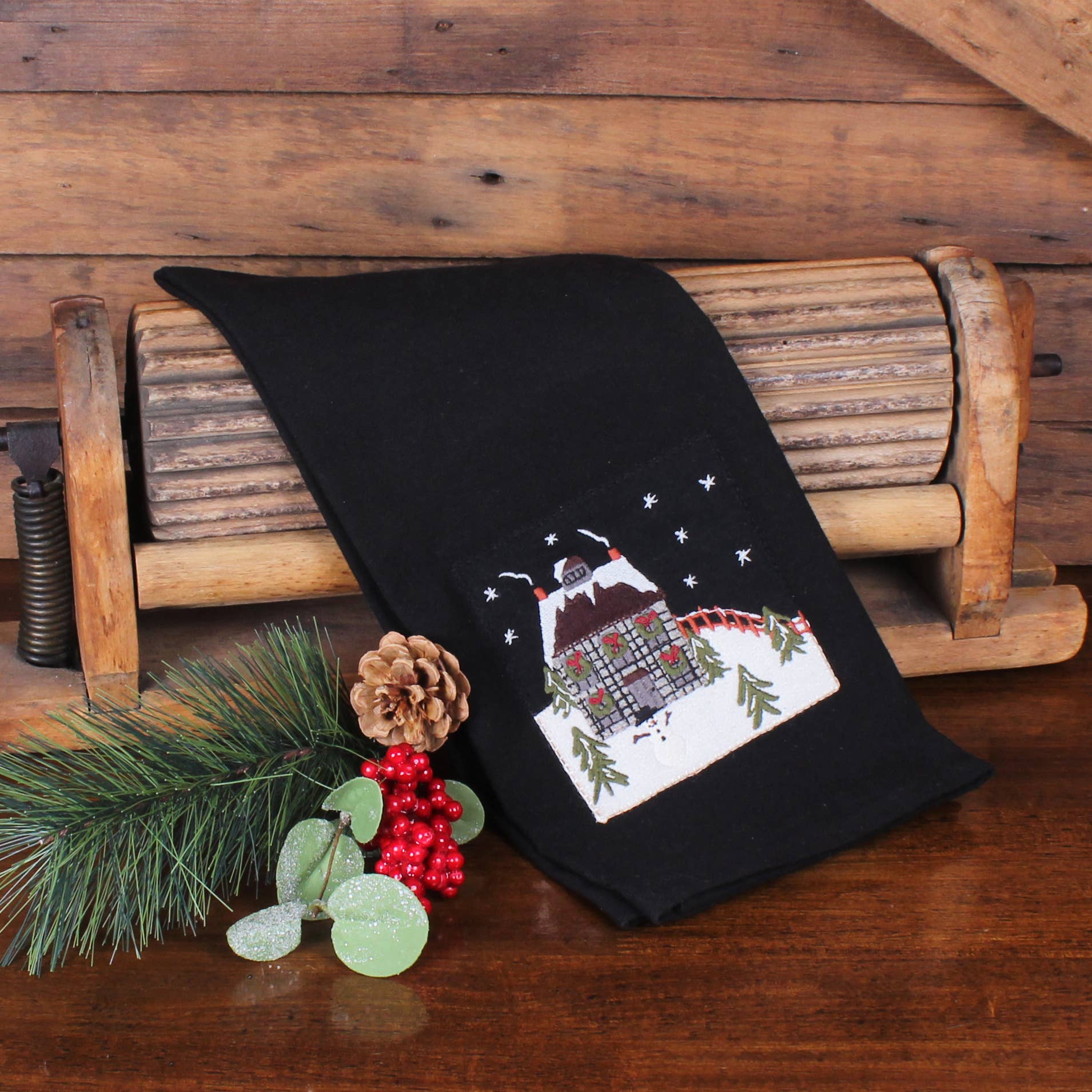 Welcome the season with the Home for the Holidays Towel, a heartwarming design depicting a snow-dusted home adorned for the holidays, complete with an endearing snowman. A delightful accent that is brings warmth to the home or a cherished holiday gift.
