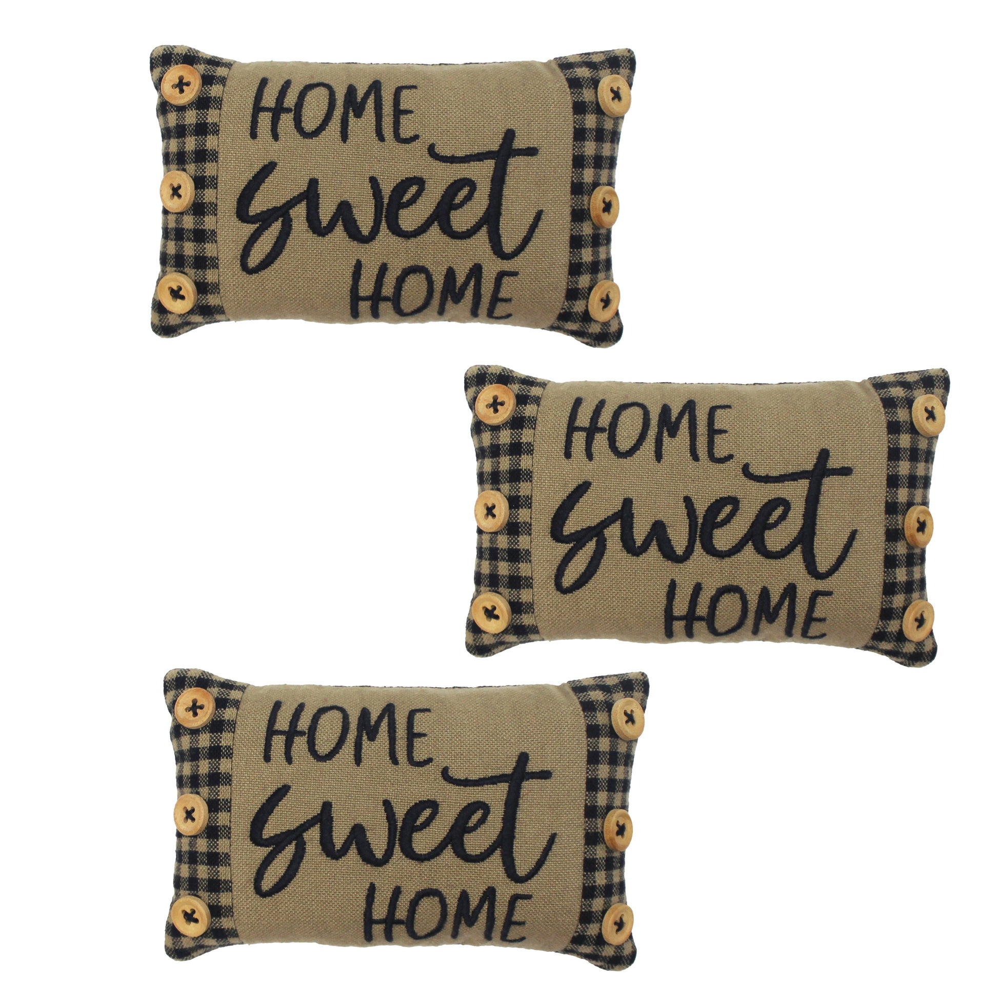 The Home Sweet Home Fills 4 In x 6 In Tabletop Decor set is a delightful addition to any country or primitive-style home. Made of durable cotton applique, each piece in the set is crafted with care to bring charm and warmth to your everyday living spaces. The set includes three beautifully designed accents, each featuring a timeless InHome Sweet Home In theme in a striking black color. This set adds a welcoming touch to tabletops, mantels, and more, perfectly complementing rustic, farmhouse-inspired decor. With its inviting design, the Home Sweet Home set is perfect for creating a cozy atmosphere, whether displayed in the living room, kitchen, or entryway. Embrace the spirit of home with these lovely, versatile pieces that make every space feel like your own personal retreat.