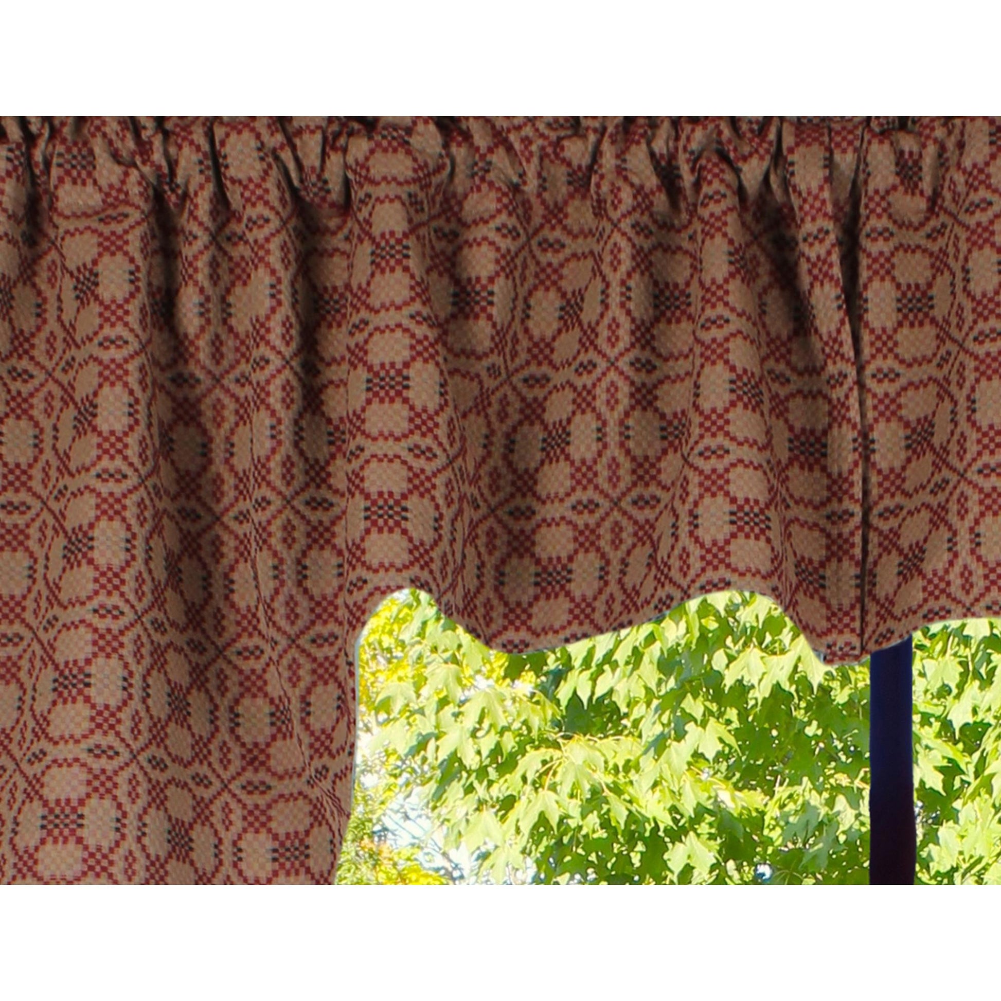 Introducing the Swag 72 In x 36 In Kendall Jacquard Red Swag, a perfect blend of elegance and rustic charm for your home decor. This set includes two beautifully crafted swags, each featuring a rich jacquard pattern in striking red, black, and oat hues. Designed to complement primitive and country-style interiors, these swags add a touch of warmth and sophistication to any room. The high-quality fabric ensures durability and a luxurious feel, making them ideal for everyday use. Easy to install and maintain, these swags are a versatile addition to your window treatments, enhancing the ambiance with their timeless appeal. Transform your living space with the Kendall Jacquard Red Swag and enjoy the perfect balance of style and comfort. Product is lined and has a rod pocket 2.5 In wide. Dry clean only.