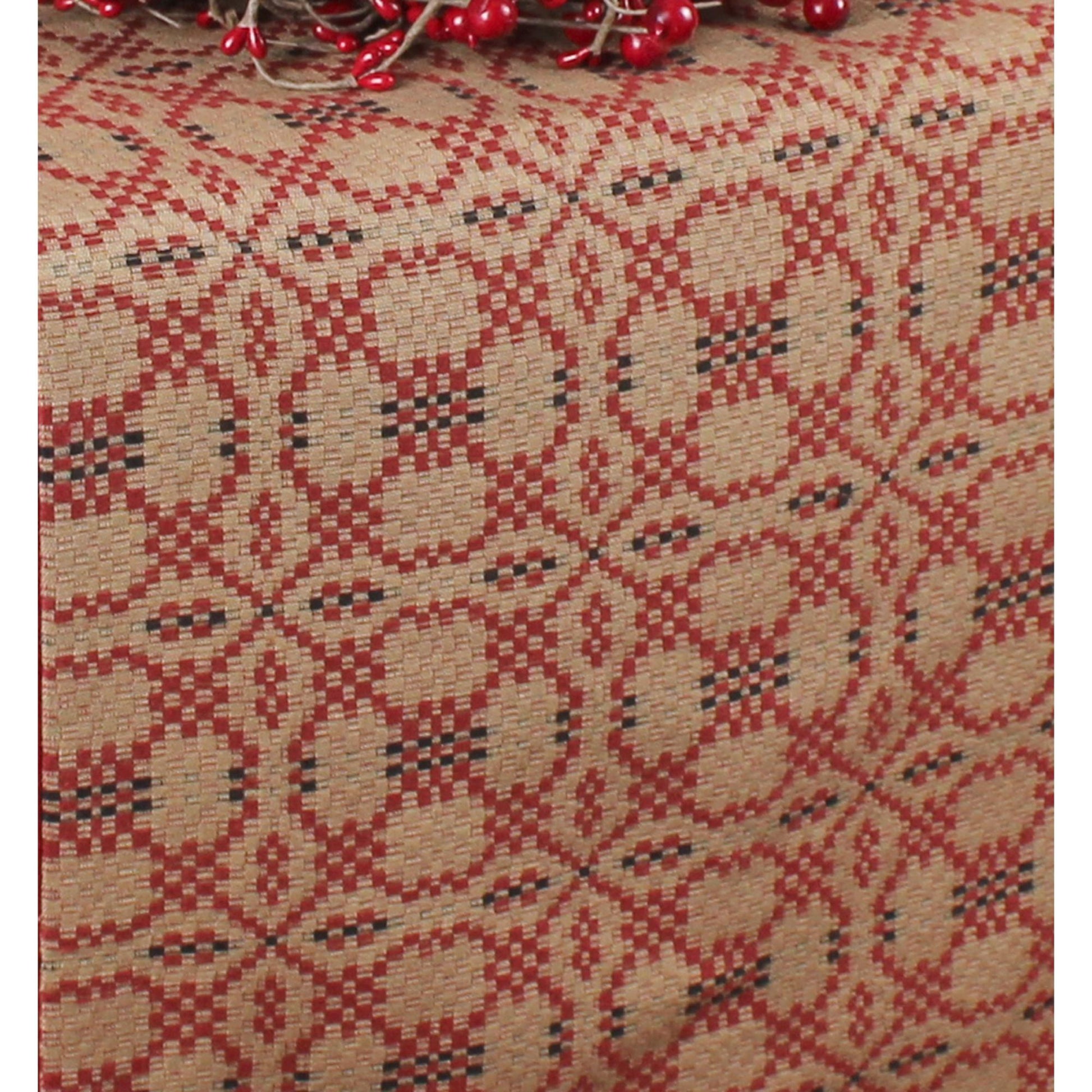 Elevate your dining experience with the Kendall Jacquard Red Table Runner, measuring 14 In x 36 In. This exquisite piece features a rich jacquard weave that combines shades of red, black, and oat, creating a striking yet versatile design. Perfect for everyday use, it effortlessly complements both primitive and country-style decor, adding a touch of elegance to any table setting. The durable fabric ensures long-lasting beauty, making it ideal for both casual meals and special occasions. Whether you're hosting a dinner party or enjoying a quiet family meal, this table runner will enhance your dining space with its timeless charm. Transform your table into a captivating focal point with the Kendall Jacquard Red Table Runner.