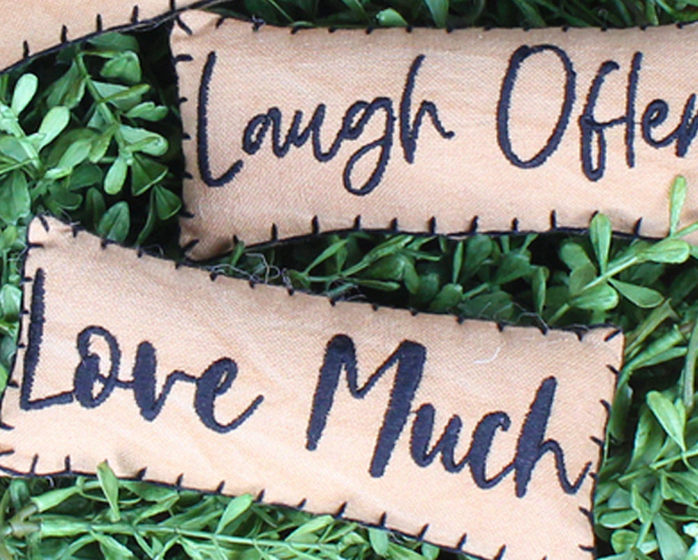 Introducing the Home Accents Live Love Laugh Fill Set, a charming addition to your farmhouse or country-style decor. Measuring 4" x 1.75", these delightful cotton accents are beautifully embroidered and tea-dyed to evoke a warm, rustic feel. Perfect for everyday use, they effortlessly blend into any room, adding a touch of heartfelt inspiration with their timeless message. Whether placed on a shelf, mantel, or tabletop, these accents serve as a gentle reminder to embrace life's simple joys. Crafted with care, they make a thoughtful gift for loved ones or a lovely treat for your own home. Elevate your living space with the cozy, inviting charm of the Live Love Laugh Fill Set.