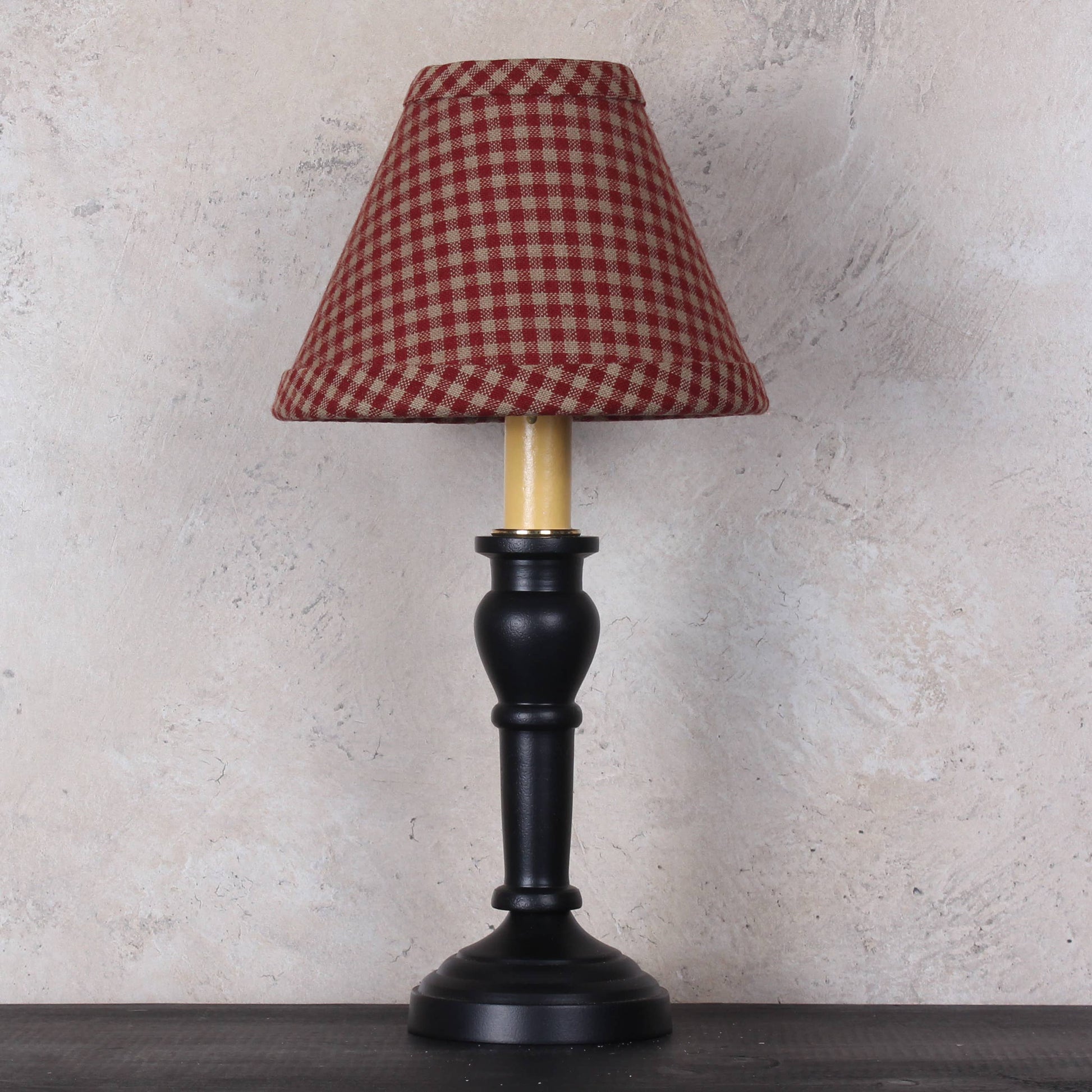 We've added a new 6 In shade to our popular Newbury Gingham Barn Red Collection! Featuring a classic barn red and oat check, the shade adds a finishing touch to your favorite candle lamp or chandelier. Also pairs perfectly with our popular Wellington Spindle Candle lamps (sold separately).