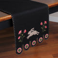 The new Primitive Bunny Table Runner features delightful leaping bunnies surrounded by pink with green stemmed flowers, finished with classic penny-end details for a true primitive touch. Perfect for celebrating spring and adding charm to special Easter gatherings, this runner brings warmth and whimsy to your table. Ideal for personal use or as a thoughtful seasonal gift.