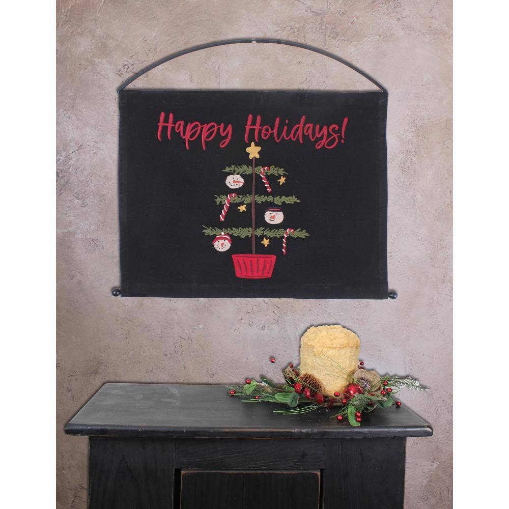 Add a charming and festive touch to your home with the Snowmen Fun Tree Pennant, a delightful accent for your Christmas decor. Made from high-quality cotton applique, this 19.5 Inx16 In pennant features adorable snowmen paired with a beautifully decorated tree, in classic holiday colors of black, tan, red, and green. Its cozy farmhouse and country style make it the perfect addition to any rustic holiday theme. This pennant is designed for everyday use, ensuring durability while maintaining its festive appeal season after season. Easy to care for, simply spot clean to keep it looking fresh throughout the holidays.