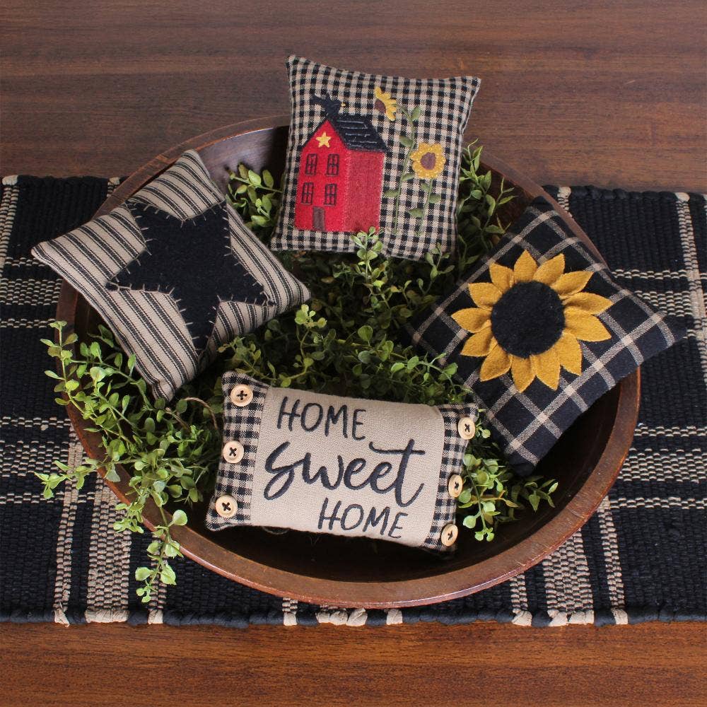 The Star Ticking Fills 5.5 In x 5.5 In Tabletop Decor set is a charming trio of home accents that seamlessly complement any farmhouse or country-style interior. Crafted from high-quality cotton applique, each piece features a timeless star design in classic black and oat hues, offering a rustic and cozy touch. The set of three accents is perfect for adding a bit of farmhouse charm to your tabletop, shelf, or mantel. Ideal for everyday use, these decorative pieces bring warmth and a welcoming feel to any room in the house. With their simple yet elegant design, they are perfect for those who love country-inspired decor with a touch of vintage style. Whether placed in the living room, kitchen, or hallway, this Star Ticking Fills Tabletop Decor set will effortlessly enhance your home.