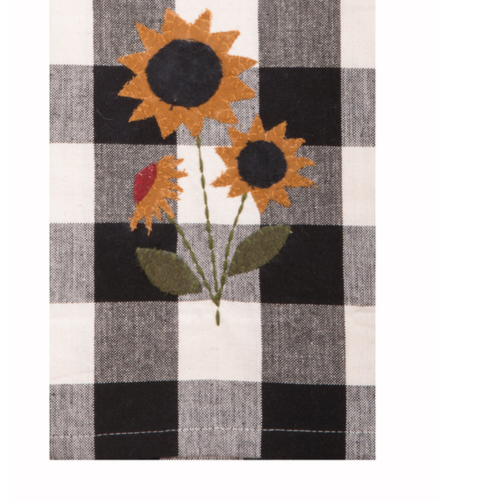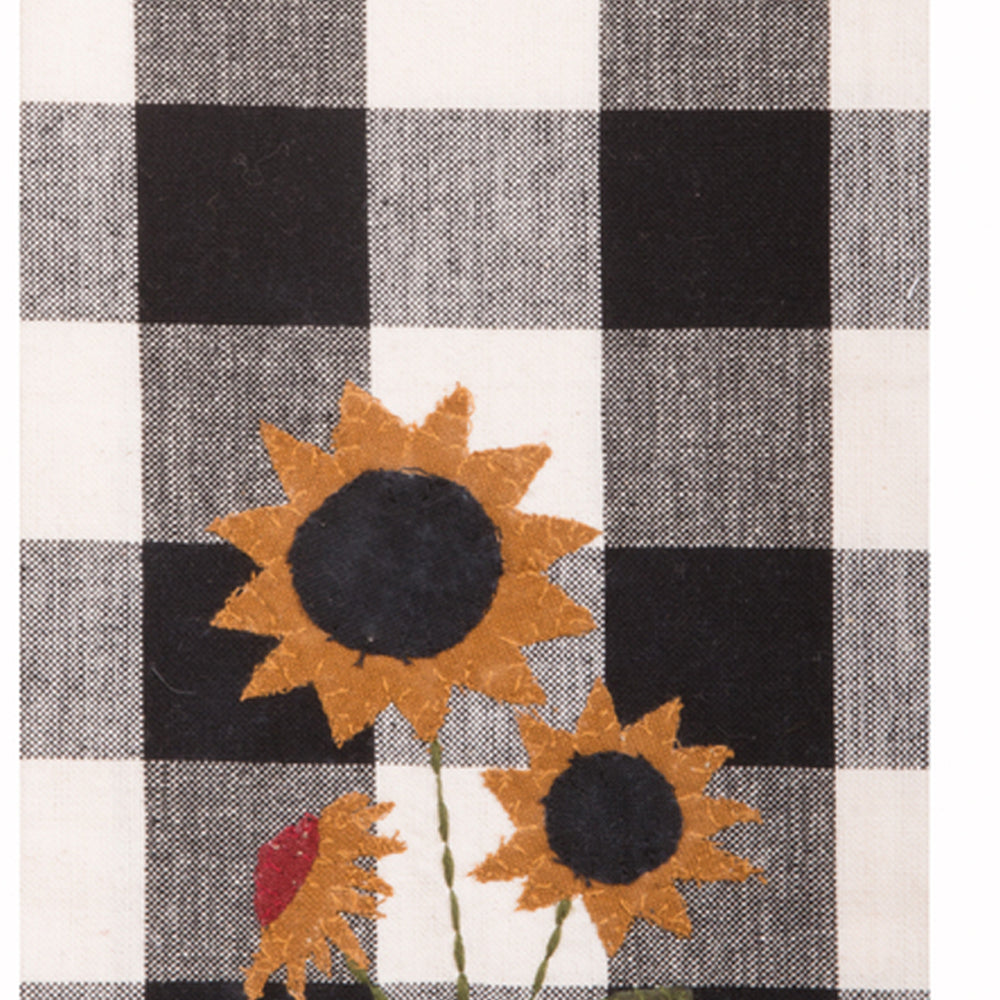 Introducing the SunFlower Bunch Towel, a charming addition to your kitchen or bathroom decor. Measuring 18" x 28", this everyday cotton towel combines functionality with a touch of farmhouse elegance. The black and white buffalo check pattern provides a classic backdrop, while the vibrant sunflower applique adds a pop of color and warmth. Crafted from high-quality cotton, this towel is not only soft and absorbent but also durable enough for daily use. Whether you're drying dishes or hands, the SunFlower Bunch Towel brings a cheerful and rustic vibe to any space. Perfect for those who appreciate a blend of traditional and contemporary design elements.