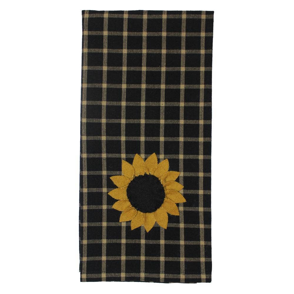 The Sunflower Kitchen Towel 18 in x 28 In adds a vibrant touch of farmhouse charm to your everyday kitchen routine. Made from durable cotton applique, its striking black background provides a perfect contrast to the cheerful sunflower design, which brings warmth and brightness to any space. Ideal for drying dishes, wiping down counters, or simply adding a decorative touch, this towel is both practical and beautiful. Its sturdy construction ensures long-lasting use, while the classic farmhouse style makes it a perfect fit for country kitchens. Whether you're looking to enhance your own kitchen or searching for a thoughtful gift, this sunflower towel brings the beauty of nature indoors. Bring a splash of sunshine into your home with this carefully crafted, country-inspired Kitchen Towel 18 in x 28 In.