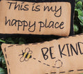 Transform your living space into a cozy retreat with the Home Accents "This is My Happy Place" decorative piece. Measuring 5.75" x 2.5", this charming accent is crafted from high-quality cotton, ensuring durability and a soft touch. The embroidered message, "This is My Happy Place," adds a personal and heartfelt touch to any room, making it a perfect addition to your farmhouse-inspired decor. The tea-dyed finish gives it a rustic, vintage appeal, seamlessly blending with both modern and traditional styles. Whether placed on a shelf, mantel, or entryway table, this delightful piece serves as a daily reminder of the comfort and joy found in your home. Elevate your interior design with this simple yet meaningful accent that speaks to the heart. Set of 3.