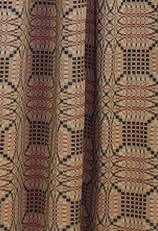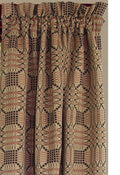 Introducing our exquisite Tri Color Jacquard Panels, measuring 72 In x 63 In each, designed to bring a touch of elegance and warmth to your living space. This set includes two panels, complete with convenient tiebacks, allowing you to effortlessly control the amount of natural light entering your room. The rich blend of nutmeg, black, and red hues creates a striking primitive and country aesthetic, perfect for enhancing any home decor. Crafted from high-quality jacquard fabric, these panels offer a luxurious texture and durability that ensures long-lasting beauty. Whether you're looking to add a cozy ambiance to your living room or a rustic charm to your bedroom, these panels are the ideal choice for everyday elegance. Transform your space with the timeless appeal of our Tri Color Jacquard Panels and enjoy the perfect balance of style and functionality. Product is lined and has a rod pocket 2.5 In wide. Dry clean only.