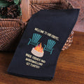 The Welcome to Our Fire Pit Kitchen Towel 18 in x 28 In is a cozy and practical addition to any lodge-inspired home, perfect for adding a rustic charm to your everyday kitchen routine. Made from high-quality cotton with detailed embroidery, its bold black color complements the warmth and rugged appeal of lodge-style d?cor. Featuring the heartfelt message InWelcome to Our Fire Pit, In this towel is a great way to celebrate the camaraderie and comfort of outdoor gatherings. Durable and absorbent, it?s ideal for drying dishes, wiping hands, or enhancing the d?cor of a kitchen or cabin. Its sturdy construction ensures it withstands daily use while maintaining its stylish appeal. Bring a touch of lodge-inspired warmth and hospitality to your space with this beautifully crafted Kitchen Towel 18 in x 28 In.