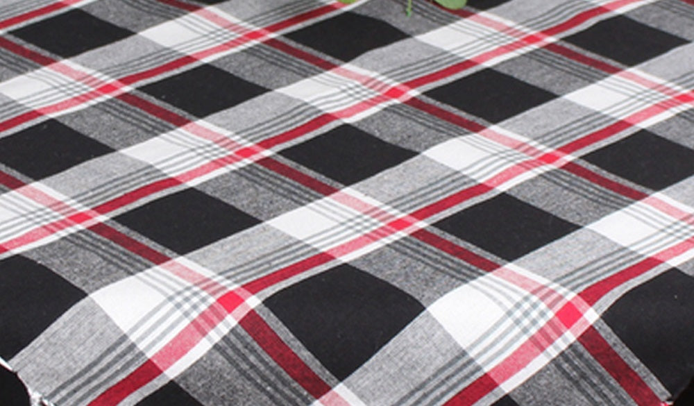 Our Winter Plaid Table Square featues a plaid of black, red, and cream and measures 36"x36" with a hand braided fringe. Made of 100% cotton. Machine wash cold, gentle cycle. Line dry. Do not bleach., Home d??cor , Christmas